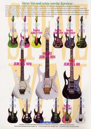 Rechts seht Ihr eine Werbeanzeige aus dem Fachblatt Musikmagazin 04/96. Man kann sehen, welche Jems es zu diesem Zeitpunkt gab und in welcher Zeitspanne sie hergestellt wurden.